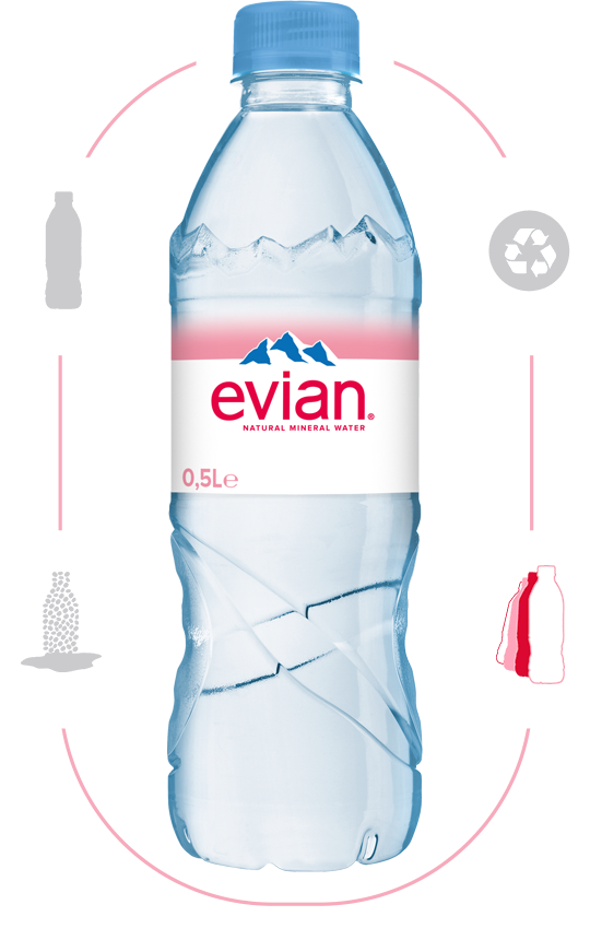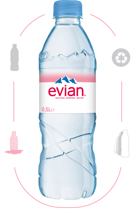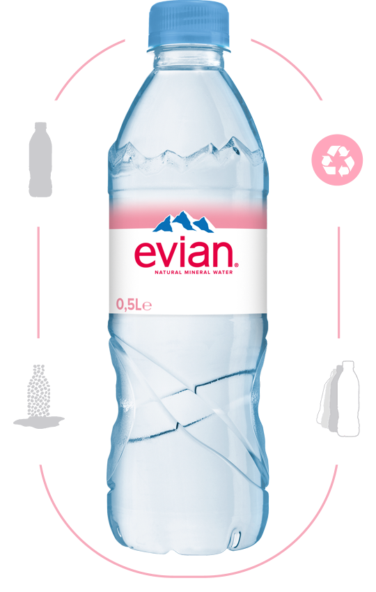 Using rPET allows us to avoid using virgin plastic to produce these evian bottles.
