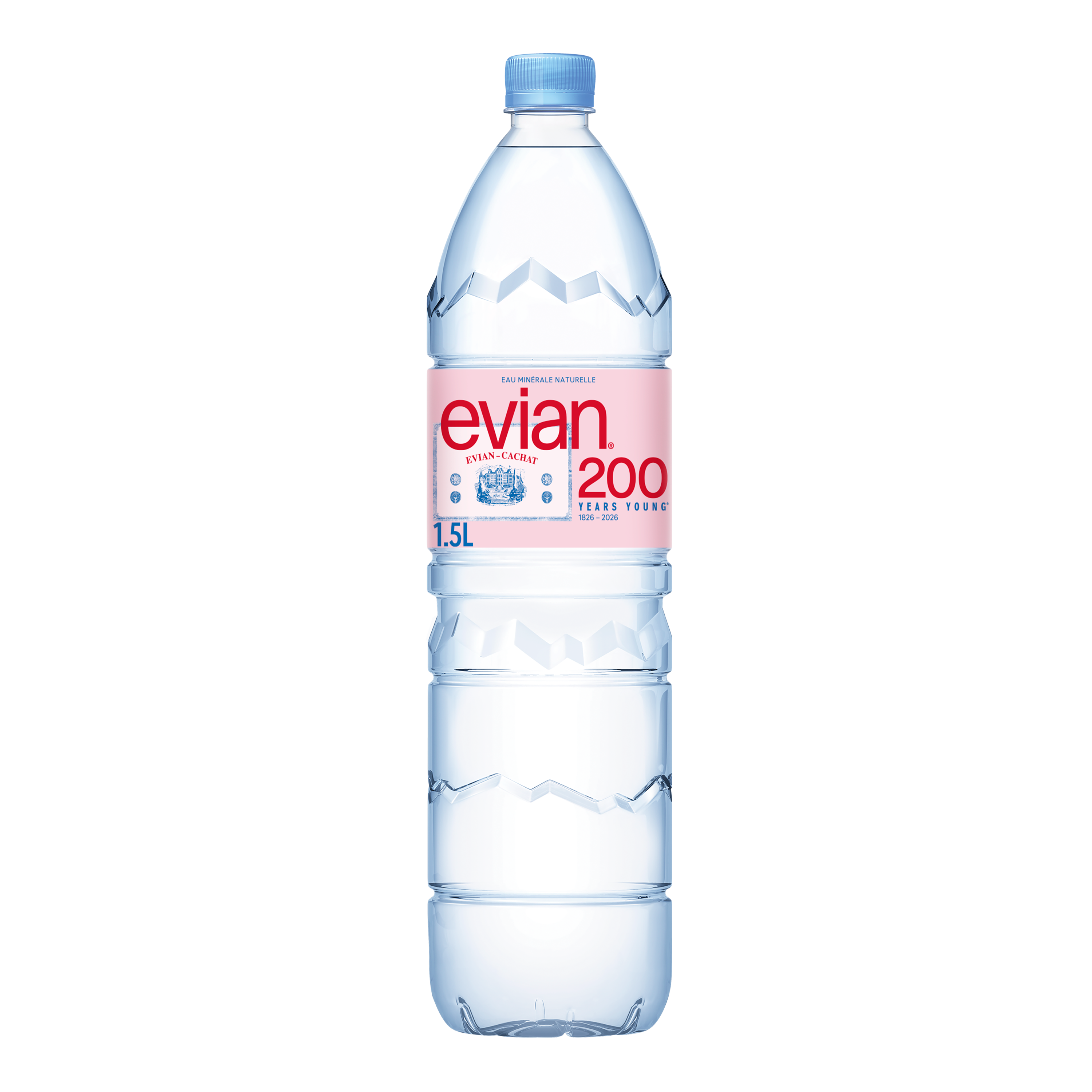 Cette étiquette rend hommage à l'héritage d'evian grâce à un design d'inspiration vintage qui met à l'honneur la Source Cachat, située dans les Alpes françaises, depuis laquelle s'écoule l'eau minérale naturelle evian.
